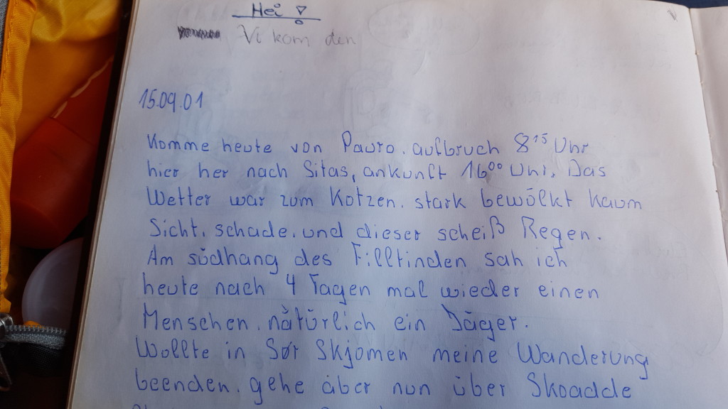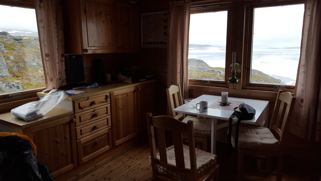 Endlich bei der Hütte angekommen, bin ich fix und fertig. Es ist bereits ein älterer Herr dort, welcher mir Schokolade anbietet. Wow, himmlisch, Danke! Bald stapft noch ein weiterer Wanderer rein. Volker ist aus Deutschland und macht eine Rundwanderung von Ristem aus, wo er seinen Camper hat. Wir plaudern ziemlich lange über mögliche Routen und Gott und die Welt. Volker will heute noch etwas weiter und verabschiedet sich bald. Auch er wandert in die selbe Richtung wie ich, also werden wir uns vielleicht wieder sehen.