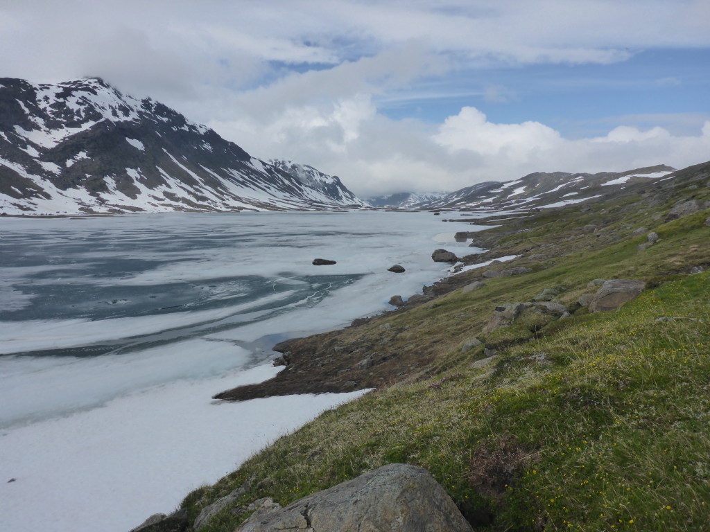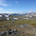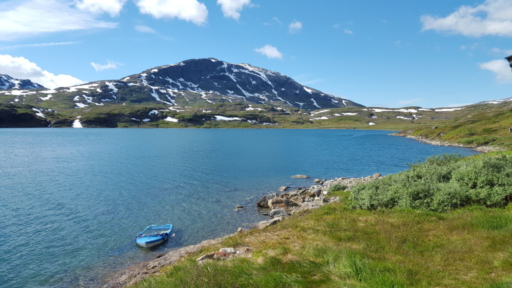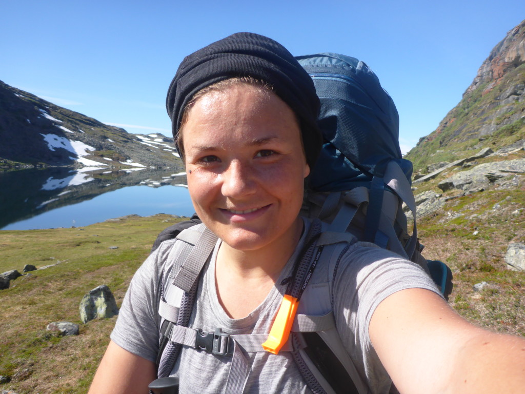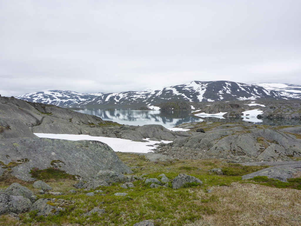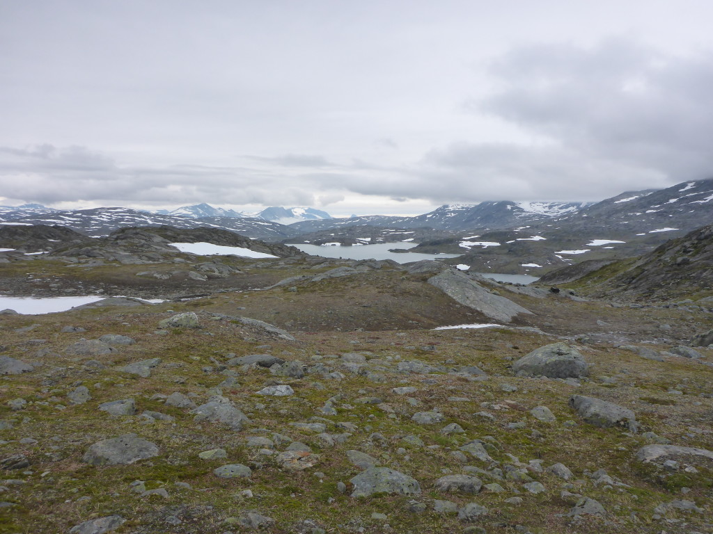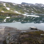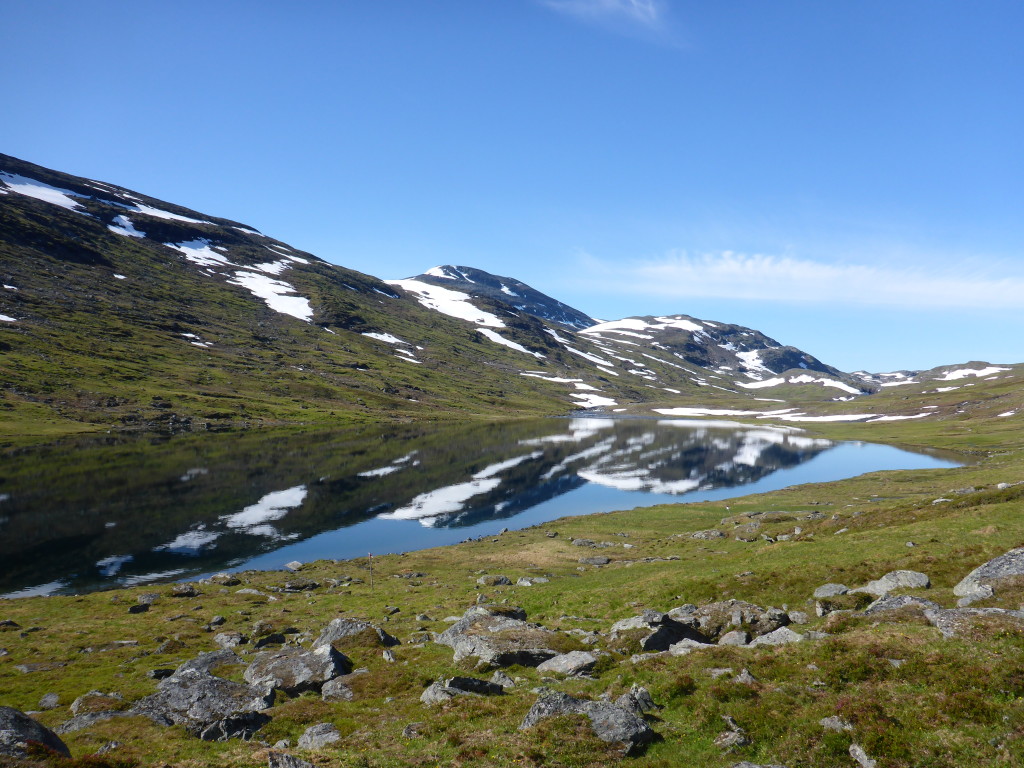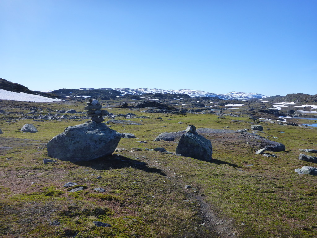Unterwegs treffe ich noch ein Paar aus Frankreich. Die Frau begrüsst mich schon von Weitem: „Ooooh, endlich eine Frau!! Schön dich zu sehen!“ Ich muss lachen, ja stimmt, Frauen habe ich tatsächlich bisher sehr selten angetroffen. Und wenn, waren sie immer in Begleitung eines Mannes. Die Leute sind mir auf Anhieb sehr sympatisch. Da sie etwas langsamer unterwegs sind, vereinbaren wir, uns heute abend bei der Roysvatn-Hütte zu treffen.