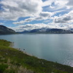 Bald schon ziehen aber Wolken auf ein ein stürmischer Wind bläst. Ich weiss, dass Volker das letzte Wegstück mit seinem Kajak, welches er am Ende des Sees versteckt hatte, zurück nach Ritsem paddeln will und ich hoffe sehr, dass er das nicht heute tun wird. Bei jeder Böe muss ich mich mit meinen Wanderstöcken dagegen stemmen. Bei einem Windschutz (Ein Dach und drei Wände) stelle ich mein Zelt so gut es geht im Windschatten auf. Allerdings befürchte ich schon jetzt, dass ich wohl eher eine unruhige Nacht vor mir habe.