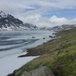 Als ich dem Gautelissee den Rücken kehre und der Pfad langsam bergauf führt, wandere ich plötzlich mitten in einer Wolke. Es ist totenstill und durch den Nebel sind nur etwa die nächsten 10 Meter erkennbar. Es ist irgendwie gespenstisch aber eine wunderbare Erfahrung. Es ist wie in einem Traum.. Auch sonst ist die Landschaft wunderschön, trotz vieler Schnee- und Geröllfelder.