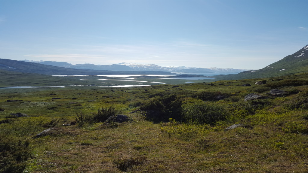 Heute fühle ich mich ziemlich fit und ich singe den ganzen Tag leise vor mich hin. Da der Padjelantaleden, auf welchem ich mich momentan befinde, wieder etwas bekannter ist, treffe ich mehr Menschen. Allerdings ist es nicht so schlimm wie auf dem Kungsleden. Der Pfad ist ziemlich breit ausgetreten, weshalb ich fast nie meine Karte benutzen muss.