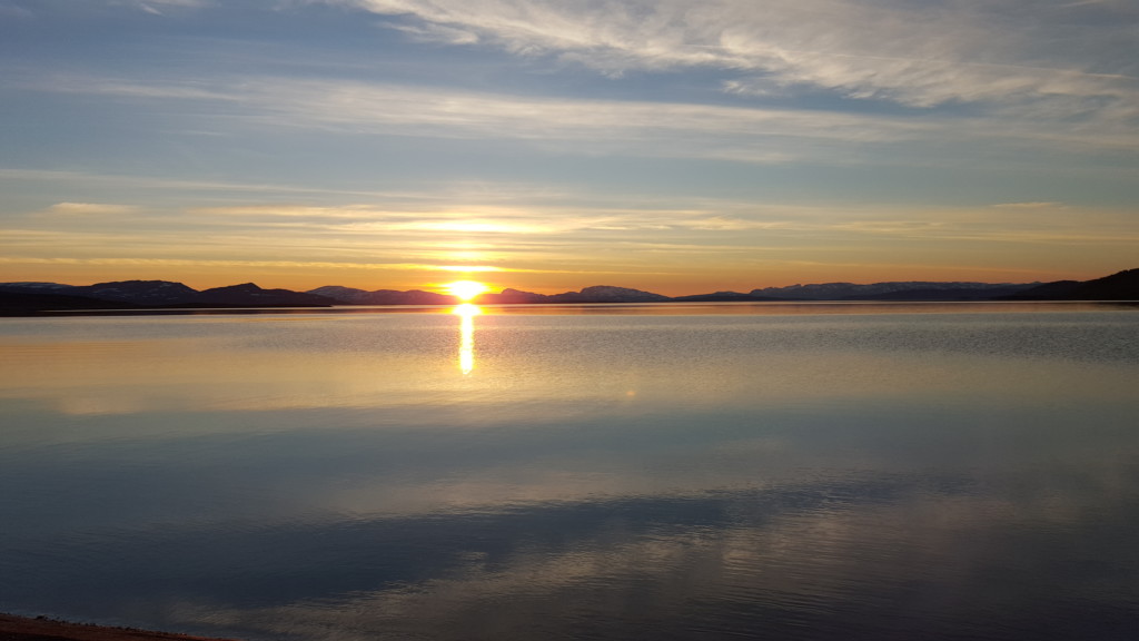 Mein heutiges Tagesziel ist Staloluokta, ein kleines Sami-Dorf. Volker hat mir geraten, dort unbedingt nach Brot und Fisch zu fragen, es sei absolut zu empfehlen. Und tatsächlich, es gibt hier einen kleinen Kiosk, wo ein paar Nahrungsmittel und Süssigkeiten angeboten werden. Auf meine Frage nach Fisch und Brot werde ich allerdings enttäuscht. Aufgrund des Windes gestern gibts leider keinen Fisch. Allerdings kann ich etwas später das frisch gebackene Brot abholen. Ich kaufe mir also ein paar Kekse und Zimtschnecken und schlage mein Zelt direkt am See auf und springe kurz ins Wasser. Es ist zwar eiskalt, aber nach diesem verschwitzten Tag tut das unenlich gut.