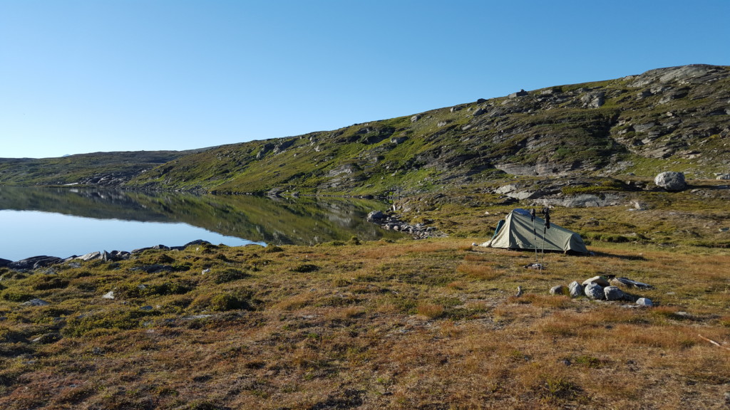 Bei einem kleinen See stelle ich erneut mein Zelt auf und geniesse die wunderschöne Abendstimmung.