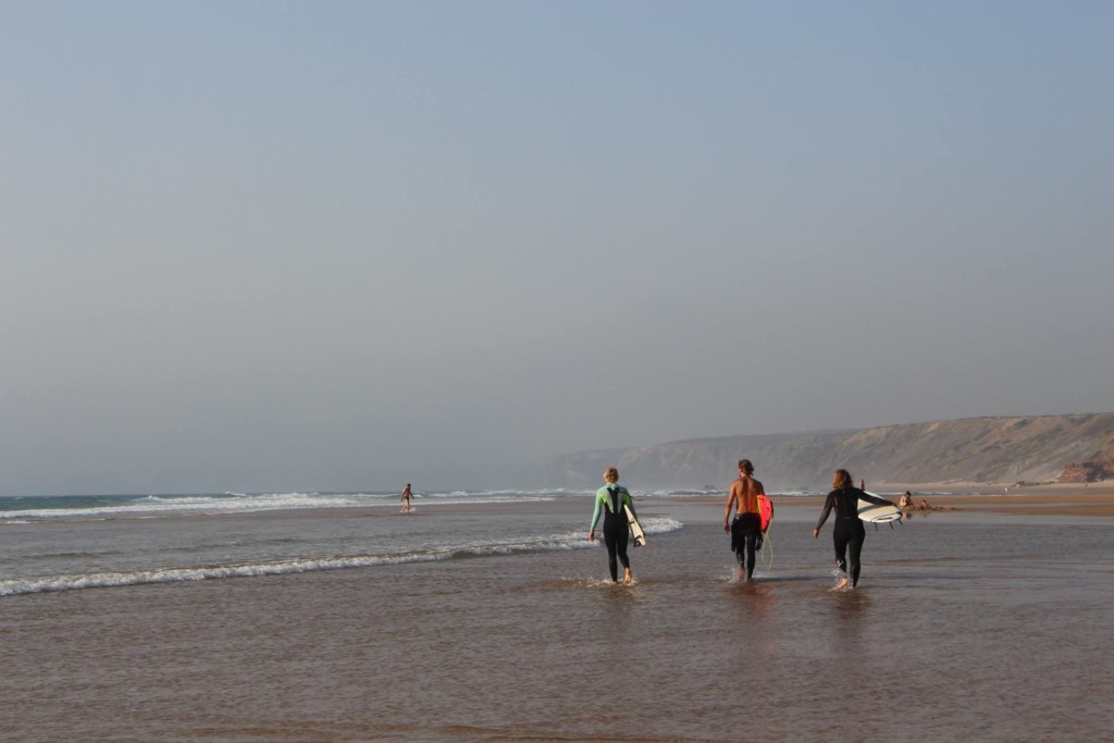 Geplant war ein kurzer Aufenthalt in Sagres, doch wie es halt so ist, sind Pläne dazu da, über den Haufen geworfen zu werden. Ziemlich genau zwei Jahre lang habe ich in Sagres gelebt und gearbeitet. Angefangen hat es damit, dass ich ein Angebot von einer Surfschule erhalten habe, bis über Neujahr als Volunteer im Camp zu arbeiten. D.h. Frühstück für die Gäste vorbereiten und ein bisschen putzen. Für meine Arbeit erhalte ich gratis Kost und Logie, Surfstunden und Surfequipment. Da ich unbedingt richtig Surfen lernen wollte, musste ich mir meine Antwort überhaupt nicht lange überlegen und ich zog schon bald ins Surfcamp ein. Da es Lowseason war, hatte ich auch überhaupt nicht viele Gäste und die Arbeit war in höchstens 2 Stunden erledigt. Jeden Tag machte ich mich nach der Arbeit auf ans Meer (2 Minuten zu Fuss) und immer und immer wieder übte ich, auf dem Surfboard zu stehen. Ich habe Stunden über Stunden damit verbracht zu fallen, wieder auf zu stehen, und übte einfach immer weiter.